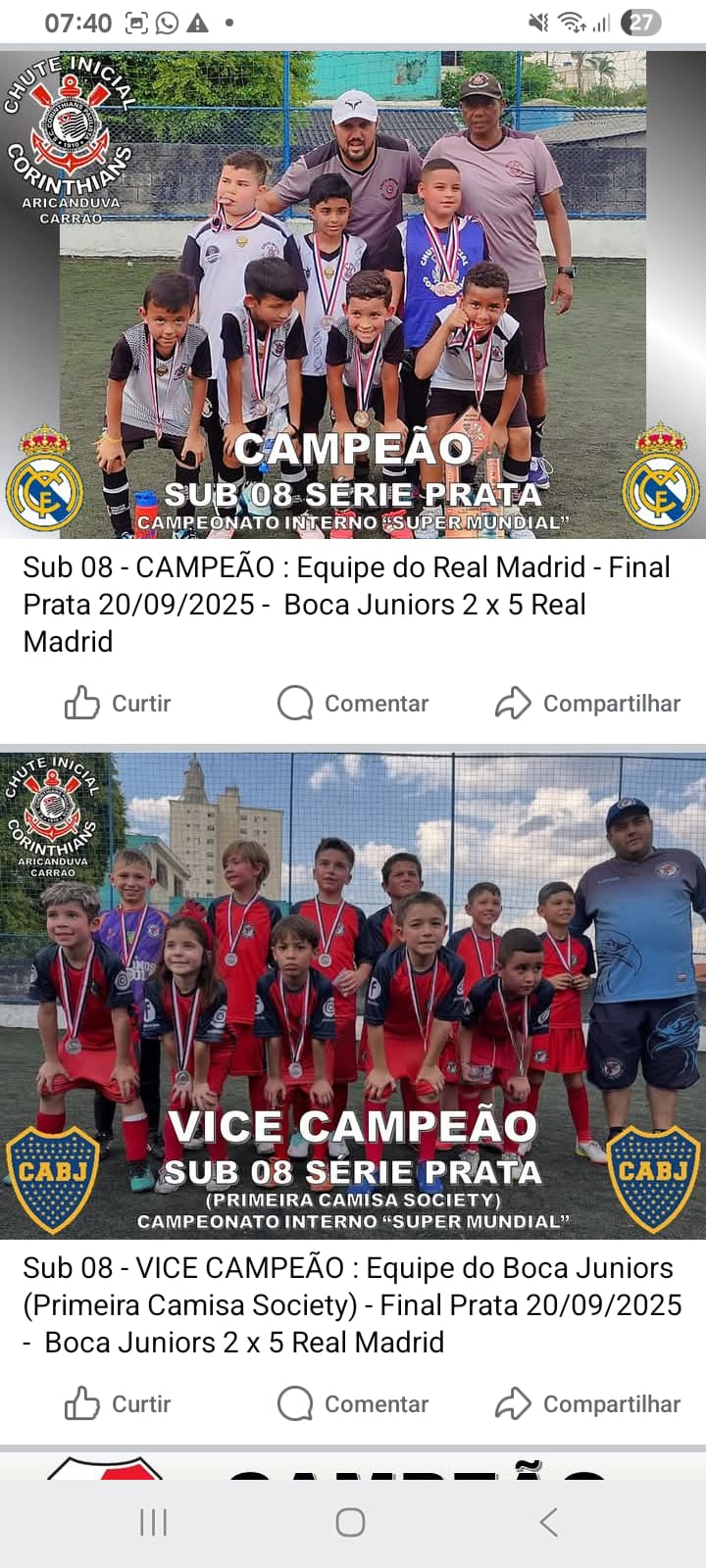 No último sábado, 20 de setembro de 2025, nossos atletas viveram momentos de muita emoção nas decisões da Série Ouro e também em um jogo válido pela Série Prata. Foram partidas cheias de garra, talento e espírito esportivo, que mostraram toda a força da base do Chute Inicial Aricanduva Carrão.